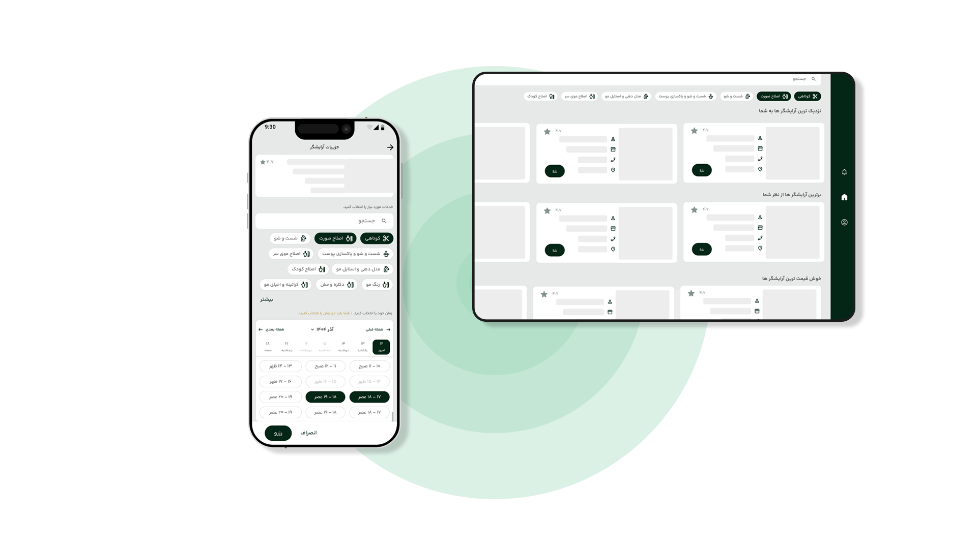 آرایشگر و خدمات را انتخاب کنید
